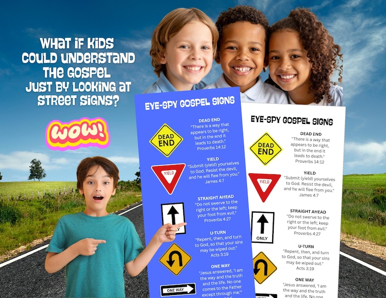 Our Eye-Spy Gospel Signs Bookmarks turn familiar road signs into powerful Bible truths kids will understand and remember. Perfect for Sunday School,