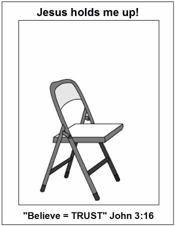 Copy pattern, above, onto heavy, white card stock paper. Have children draw a picture of themselves sitting in the "trust chair" and then color it with colored pencils.